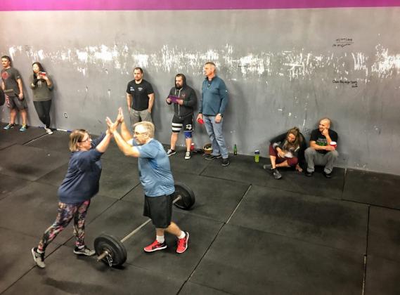 High-five for our gym! And for spouses who do the Open together! (Chrys and Ron celebrate at the end of 17.3)